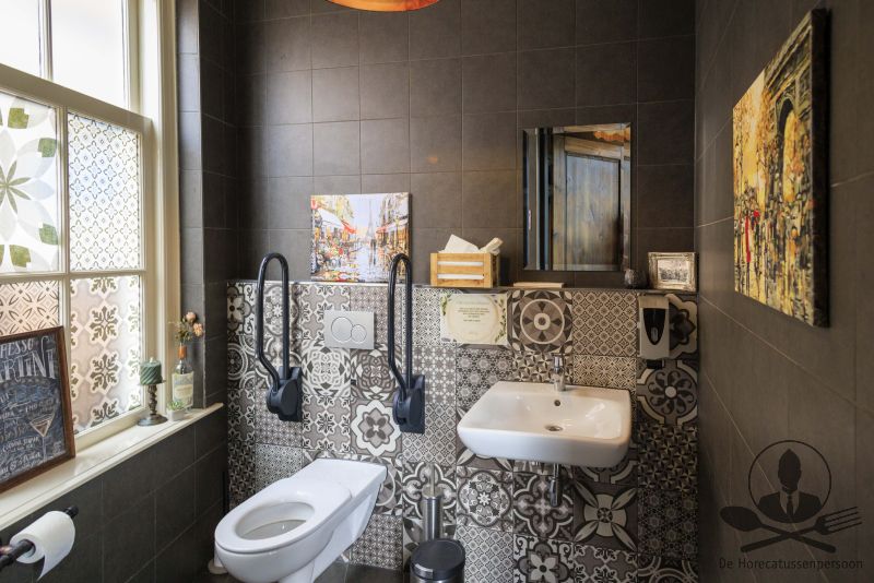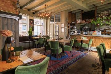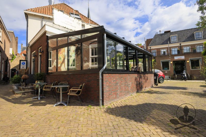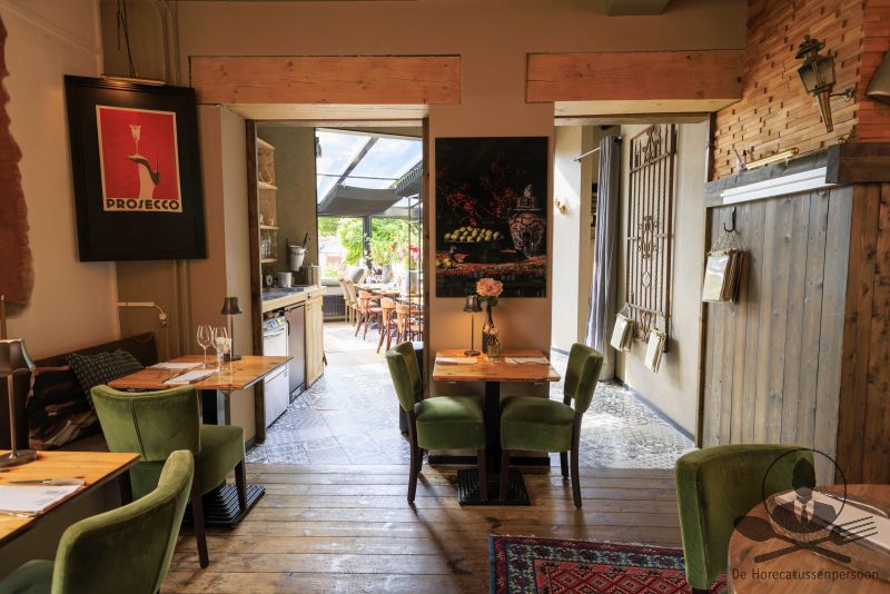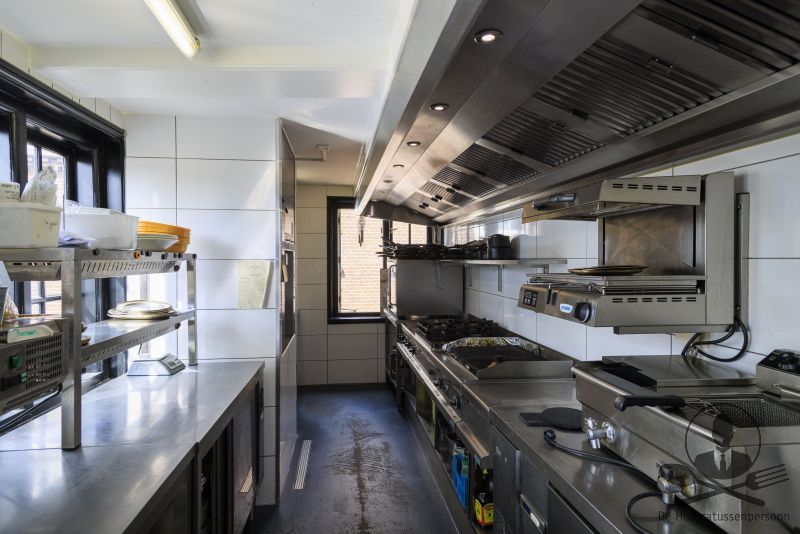 Samen bieden begane grond en serre circa 50 zitplaatsen, buiten aan de gevel is een sfeervol terras met ongeveer 16 stoelen. Aan de achterzijde grenst een openbare parkeerplaats, handig voor gasten die met de auto komen en via deze zijde kunnen leveranciers eenvoudig aan- en afrijden. Op de eerste etage ligt een verrassend ruime keuken, geschikt voor zowel à-la-carte als groepen.