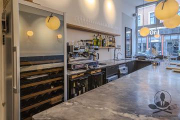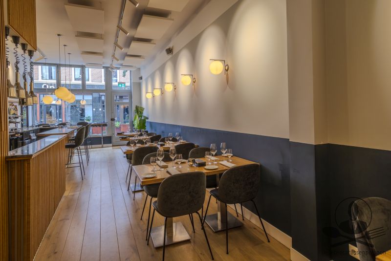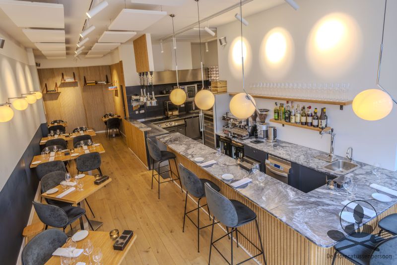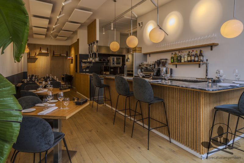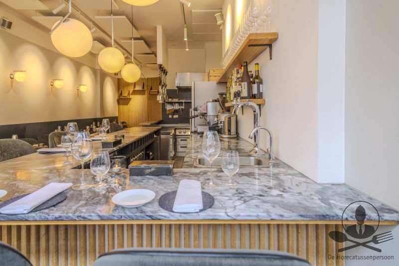 De onderneming beschikt over een moderne, warme en efficiënt ingerichte ruimte met een open keuken, marmeren barcounter, ruime wine-storage en een strak uitgewerkt zaalplan. Het interieur is gebouwd met zichtbare aandacht voor materiaalgebruik: hout, rustige kleuren, luxe verlichting en een hoogwaardige afwerking. De indeling is bijzonder flexibel en werkt voor meerdere concepten.