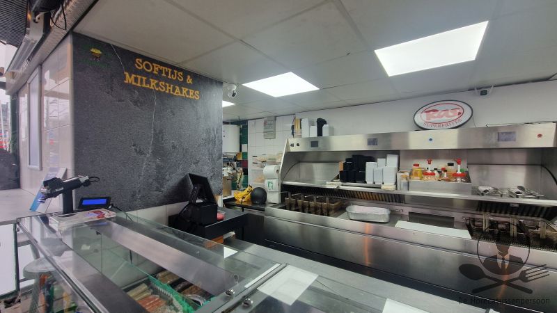 De onderneming is praktisch ingedeeld met een ruime uitgiftecounter en een grote koelvitrine. Achter de counter staat een professionele bakwand met capaciteit voor tien mandjes tegelijk, plus een Nissei softijs- en milkshake machine. Boven de vitrine hangen displays voor de menu’s.